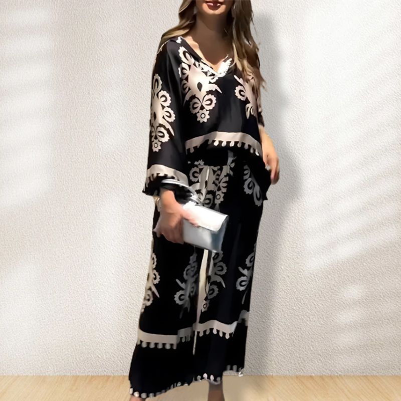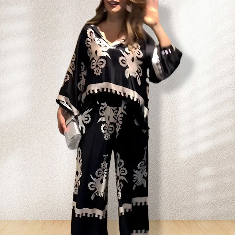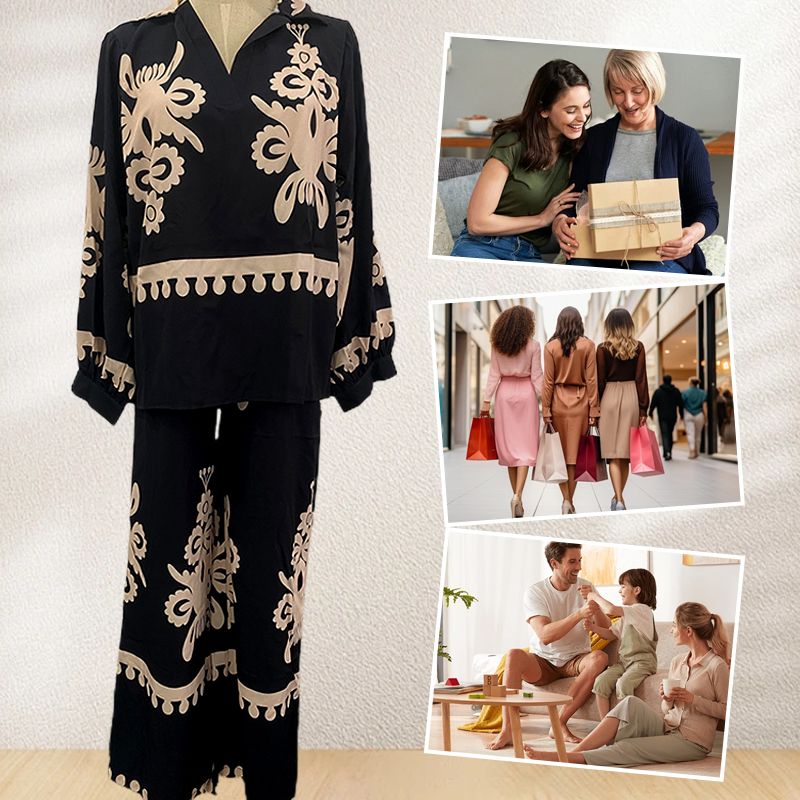 🎁Damski luźny dwuczęściowy zestaw (top + spodnie z szerokimi nogawkami)
