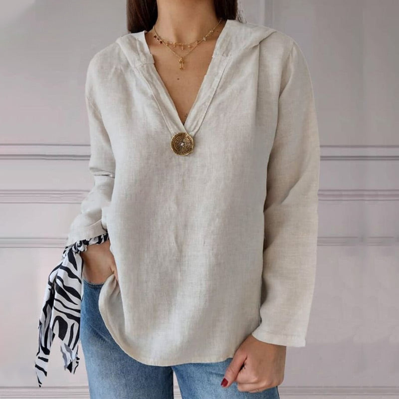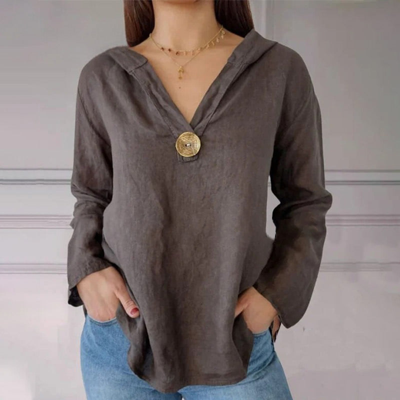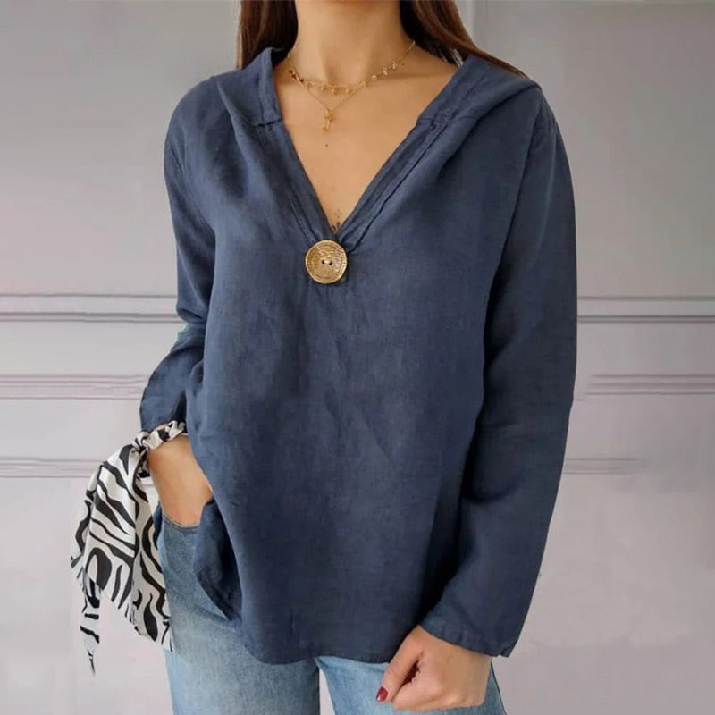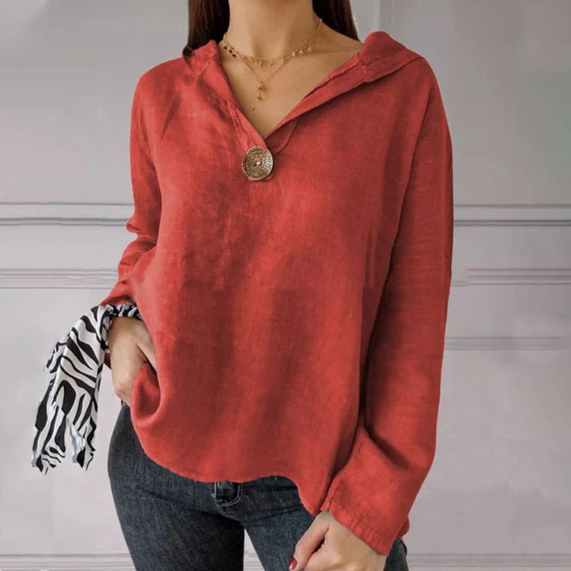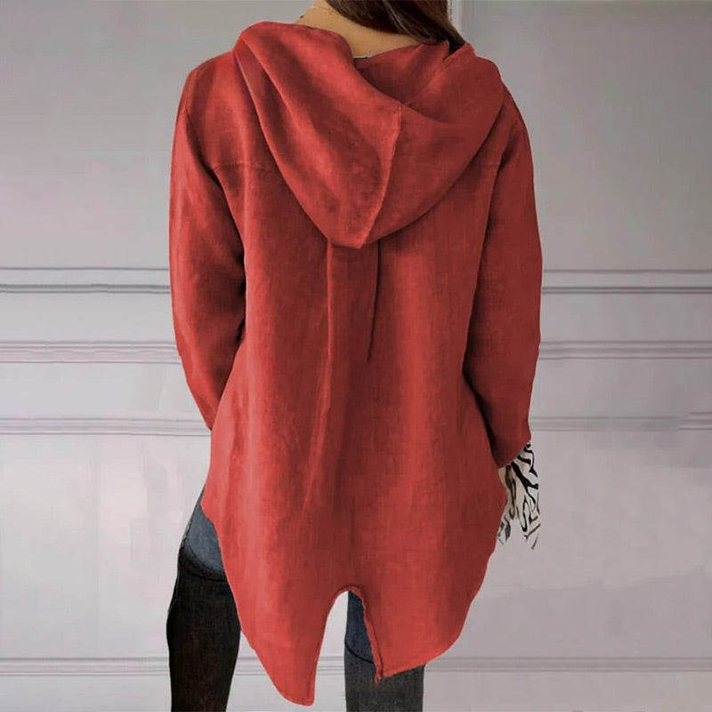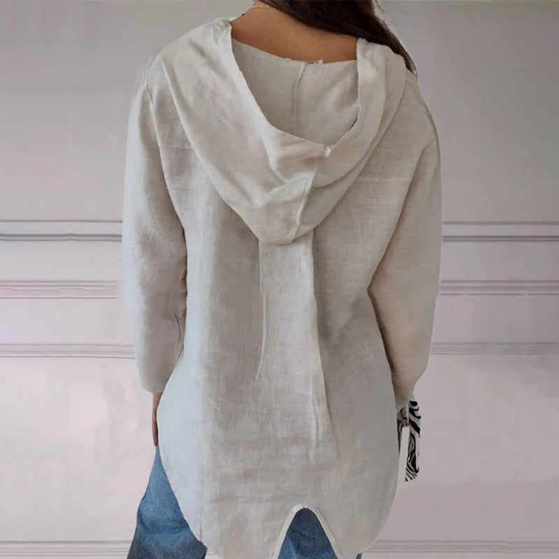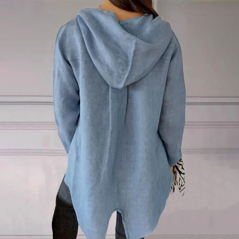🌟Jednokolorowa koszulka z kapturem z jednym guzikiem i jaskółczym ogonem