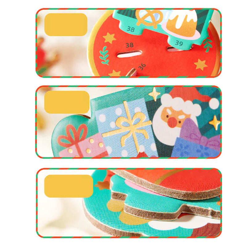 ŚWIĄTECZNY WZÓR I NAJWYŻSZA JAKOŚĆ: Klasyczny kształt choinki, ozdobiony świątecznymi dodatkami i złotymi detalami, natychmiast wprowadza świąteczny nastrój. Ponumerowane elementy zapewniają łatwy montaż, a grube kartonowe elementy gwarantują trwałość i stabilność, dzięki czemu można się nią cieszyć przez długi czas.