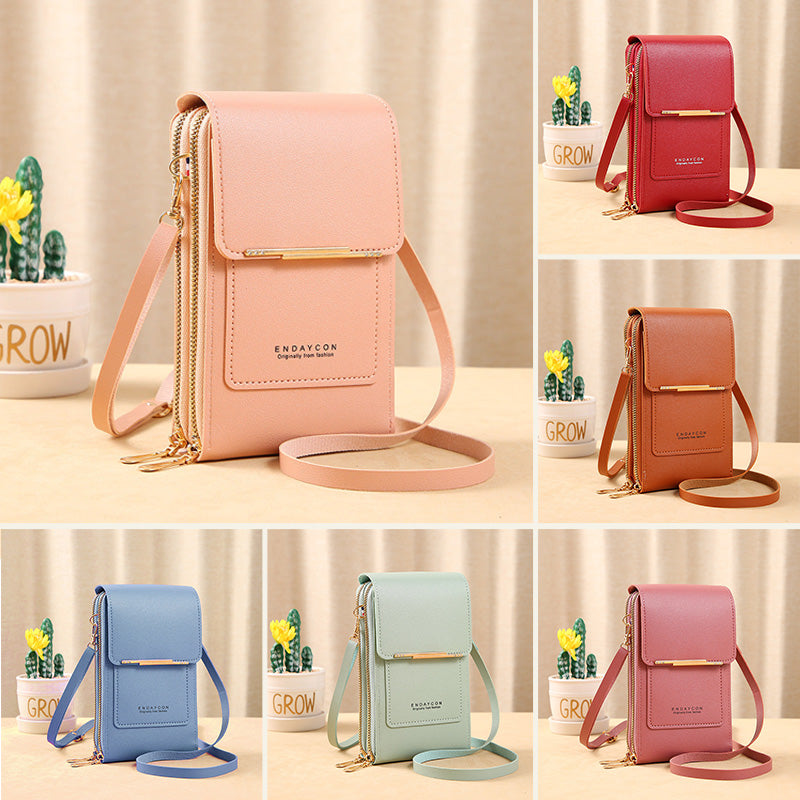 Features a convenient compact size with a large capacity space that can carry everything you need for your daily travel. It offers 3 roomy compartments with mini pouches and handy card slots that can store cash, keys, multiple cards, lipstick, tissue, coins, and other necessities. The pouch bag also has a smart, transparent touch-sensitive phone holder where you can freely operate your mobile while still safely tucked inside. It provides clear visibility and a smooth touch screen performance for better and maximum operation. No worries as this mini bag is lightweight and is equipped with a secured smooth sliding zipper closure and simple snap closure. Ensuring you an all-day comfort, and that no valuables would slip out as you tour while still providing an easy accessibility for you.