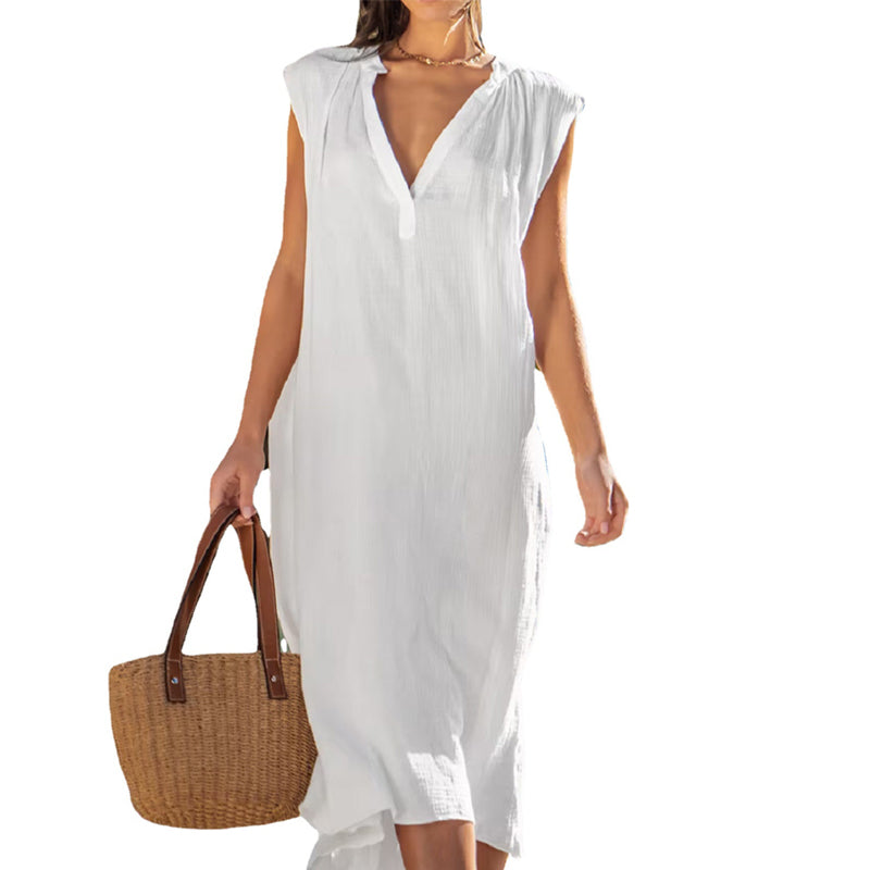Zachowaj chłód i wygodę w ciepłe dni. Konstrukcja bez rękawów sprawia, że ta sukienka jest idealna na słoneczne dni, wakacje na plaży, swobodny strój wypoczynkowy lub warstwę odzieży wierzchniej w chłodniejsze miesiące.