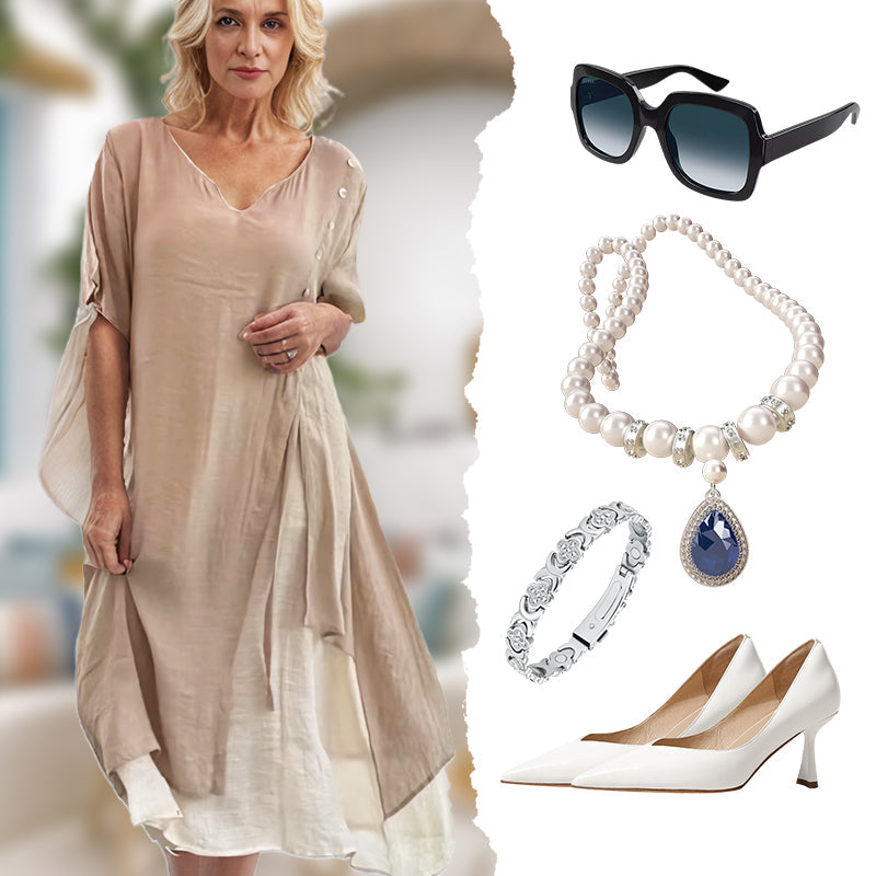 【S-4XL】💞Damska dwuczęściowa sukienka midi o zwiewnym kroju