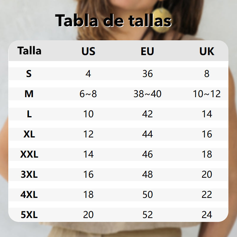 Talla: S, M, L, XL, 2XL, 3XL, 4XL