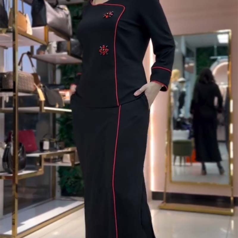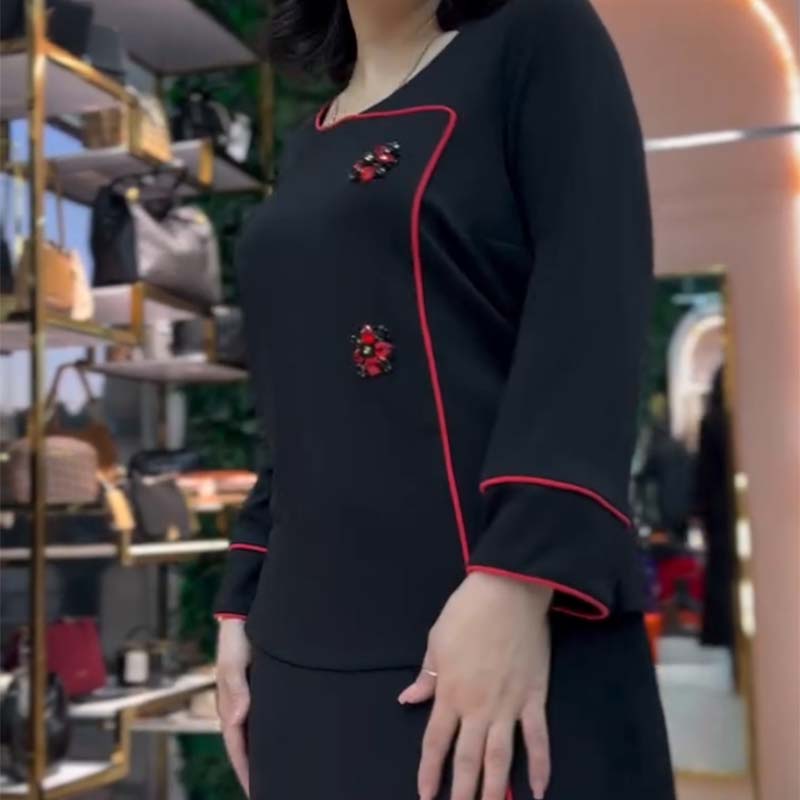 ELEGANCKI DWUCZĘŚCIOWY ZESTAW - Ten damski dwuczęściowy zestaw składa się ze stylowego czarnego topu i spódnicy, idealnych na różne okazje. Elegancki design płynnie łączy wyrafinowanie z nowoczesną modą, dzięki czemu jest niezbędny w szafie.