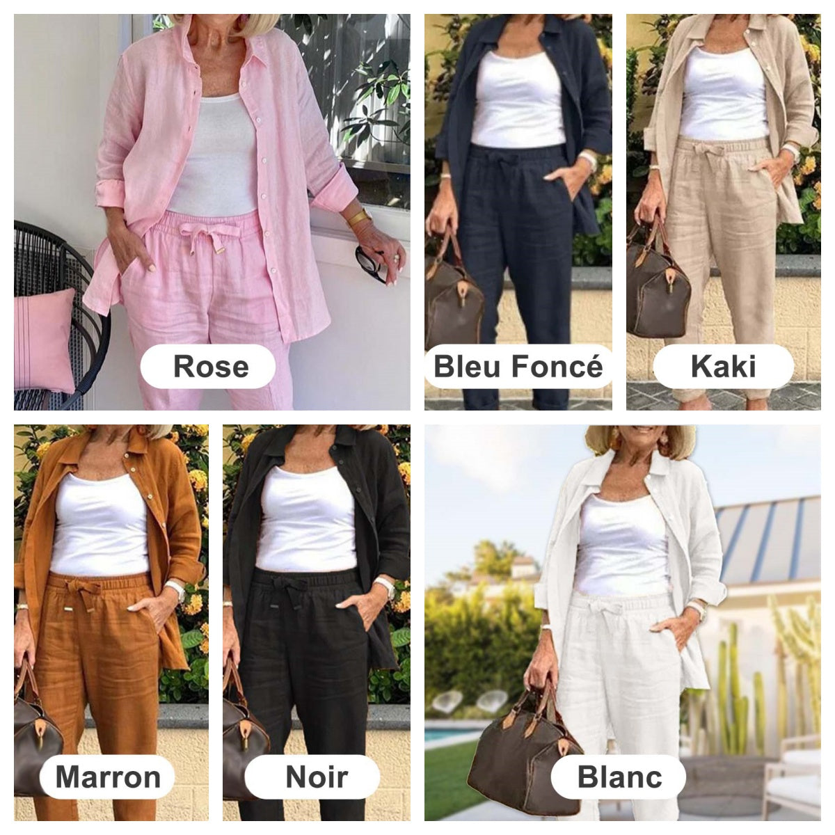 Pakiet zawiera: Damska bawełniana i lniana bluzka z długim rękawem i spodnie.