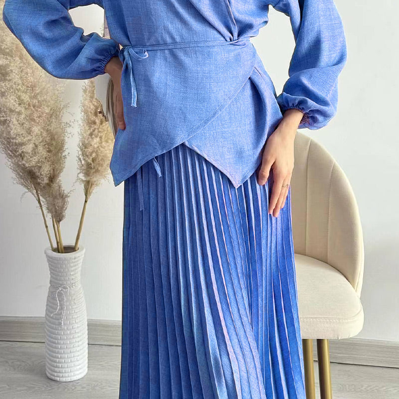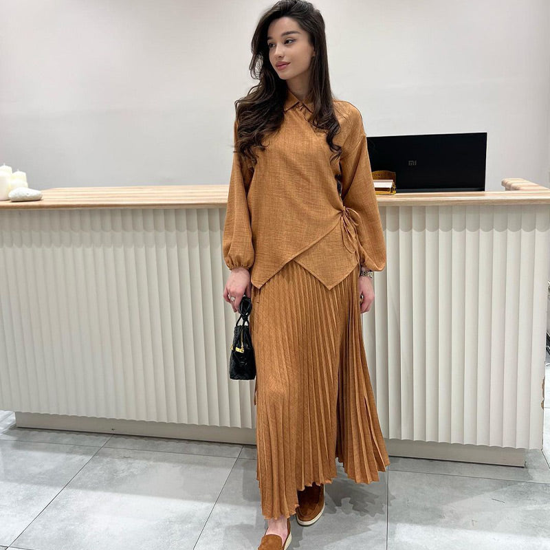 Opakowanie zawiera: 1*Elegancki 2-częściowy zestaw z koszulą z paskiem w talii i plisowaną spódnicą