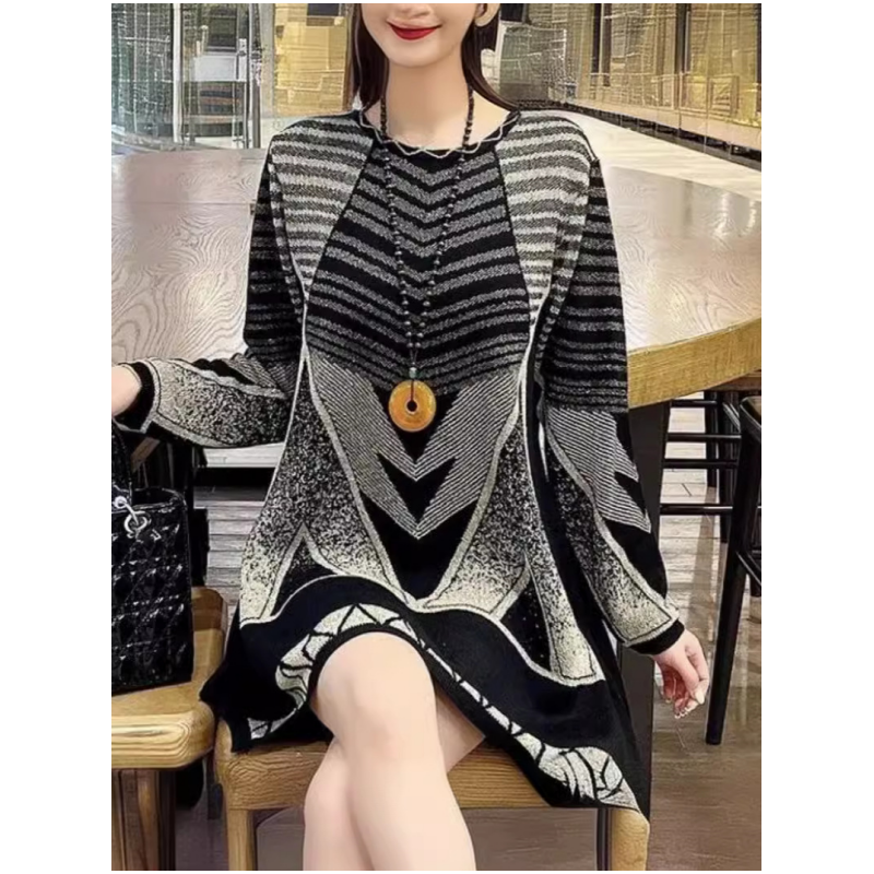 ✨Wygodna damska luźna sukienka z dzianiny w kolorowe paski