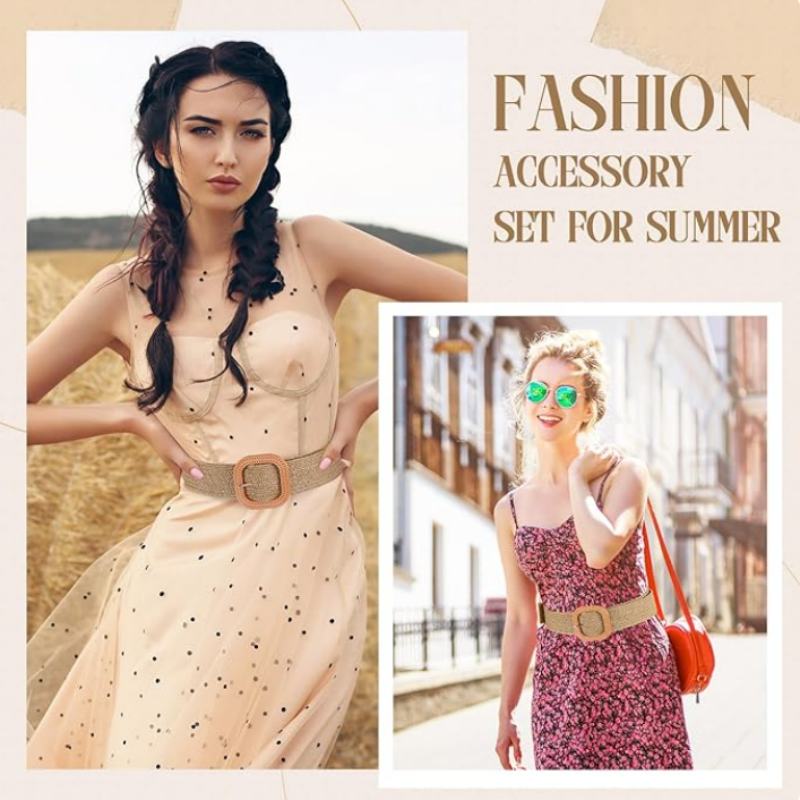 Niezawodny materiał: nasz tkany pasek dla kobiet jest wykonany z wysokiej jakości naturalnego materiału słomianego, oddychającego i wygodnego, odpowiedniego do noszenia przez cztery pory roku; Możesz dopasować go do słomianej torebki, sandałów plażowych, kapelusza przeciwsłonecznego, kolczyka boho i tak dalej, co sprawi, że będziesz wyglądać uroczo.