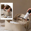 Kosmetyczka podróżna o dużej pojemności wykonana z kremowej skóry PU, miękkiej i wysokiej jakości jak chmurka.
