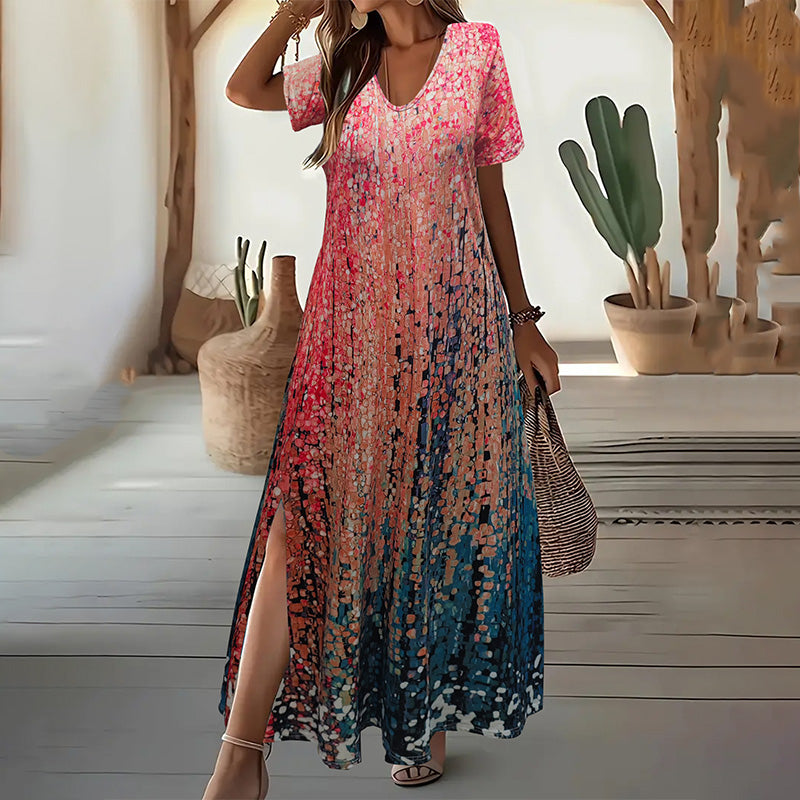 🌼Kobieca sukienka z krótkim rękawem w kwiatowy wzór