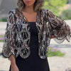 PROJEKT:Przezroczysty kardigan i ozdobne cekiny sprawiają, że ta wieczorowa chusta jest doskonałym uzupełnieniem kobiecej sylwetki. Załóż go i zaprezentuj swoją najbardziej dostojną i piękną stronę.