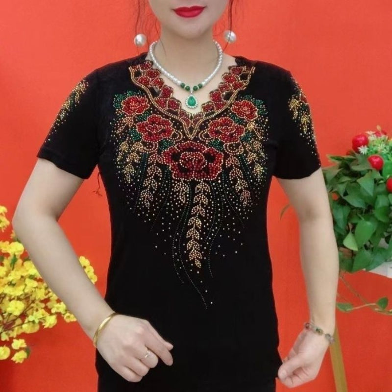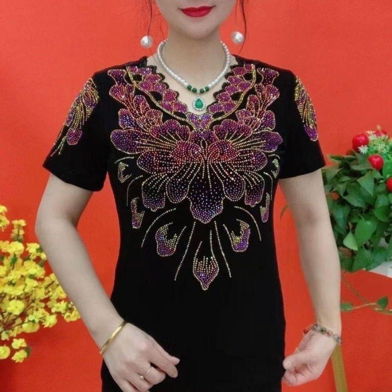 Zawartość opakowania:1*Top z krótkim rękawem z kryształkami i elegancją