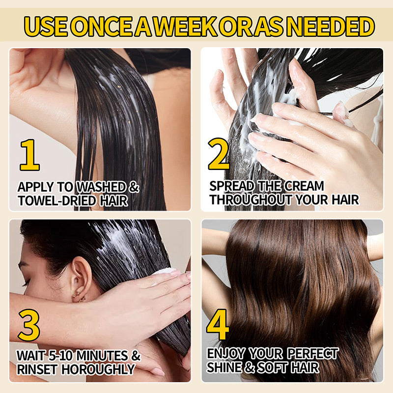 ŁATWA APLIKACJA I UŻYCIE:Zaprojektowana z myślą o wygodzie, wystarczy nałożyć maskę na czyste, wilgotne włosy, koncentrując się na ich długości i końcach. Pozostawić na 5-10 minut przed dokładnym spłukaniem dla uzyskania optymalnych rezultatów.