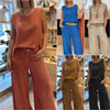 Jednokolorowy top bez rękawów i spodnie z szerokimi nogawkami, 2 sztuki