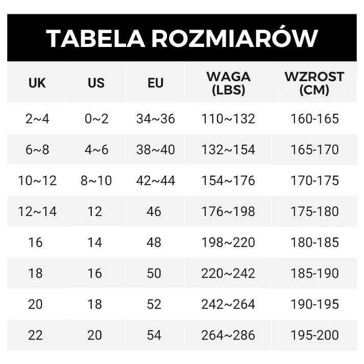 Proszę pozwolić na możliwość wystąpienia różnicy 2–3 cm ze względu na ręczny pomiar.