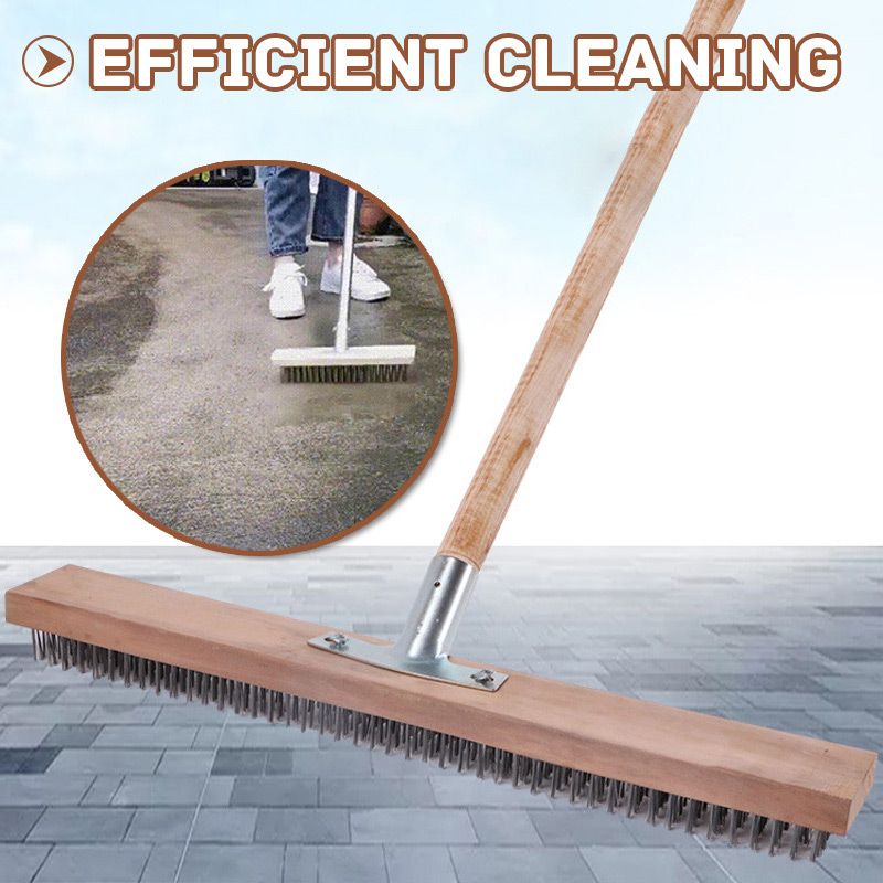 Twarda stalowa szczotka skutecznie usuwa plamy, mech, uporczywy brud i tłuszcz z szorstkich i twardych podłóg, nadając im schludny i czysty wygląd oraz zapobiegając poślizgnięciom.