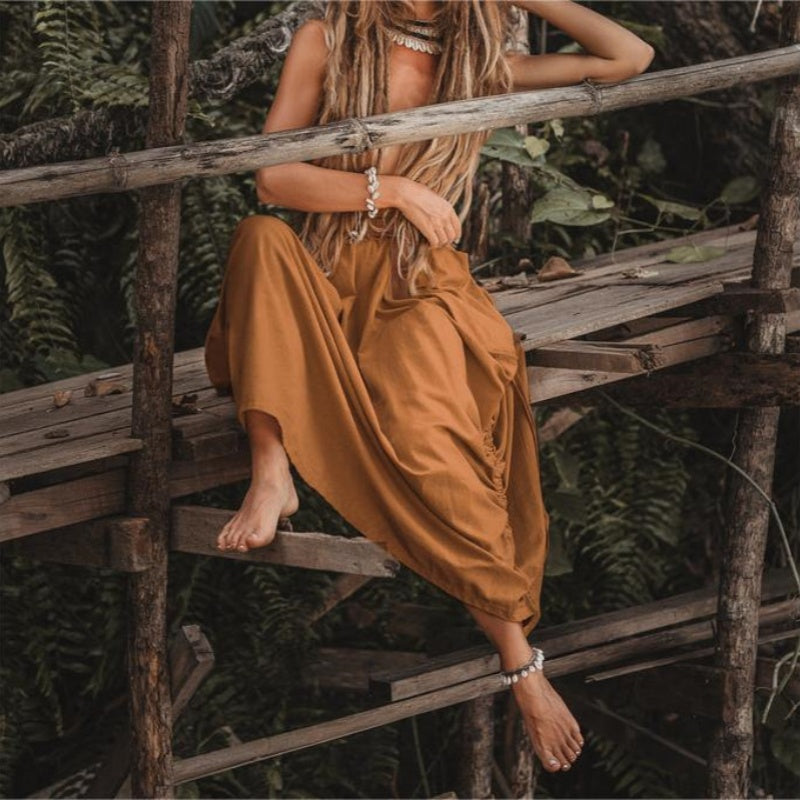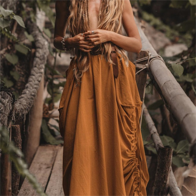 Damska casualowa spódnica maxi ze sznurkami po bokach