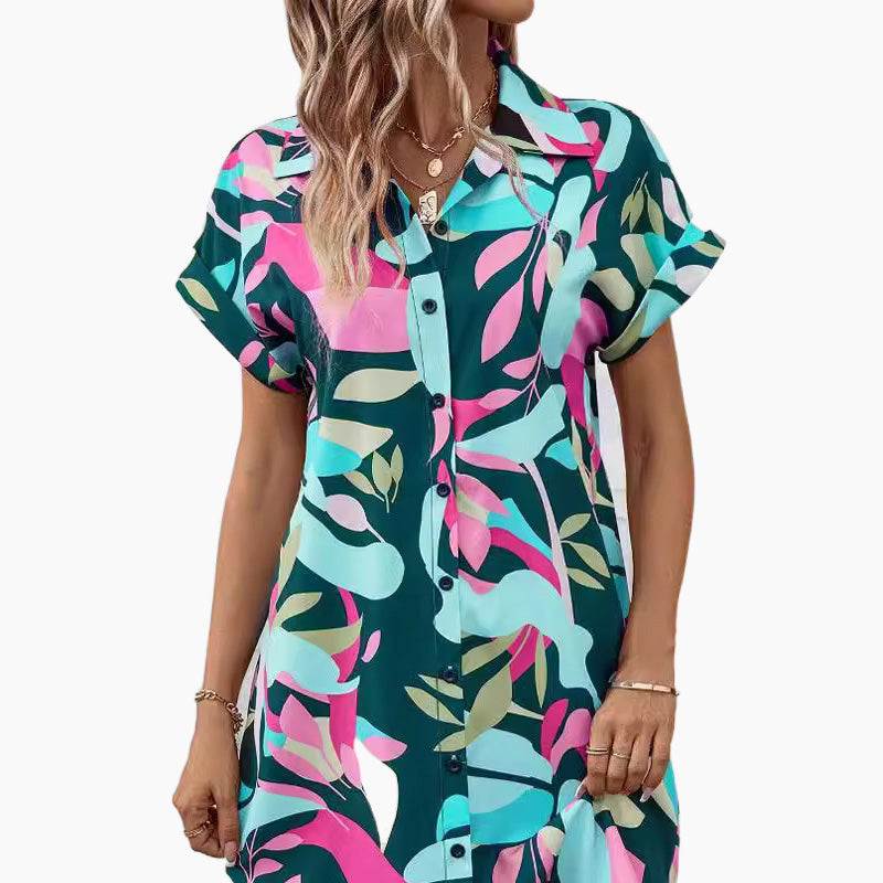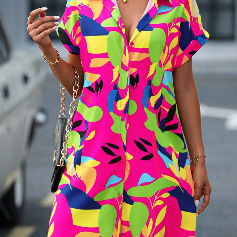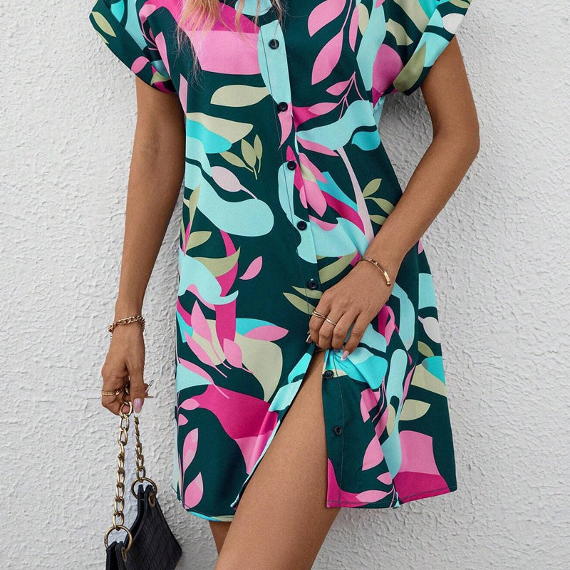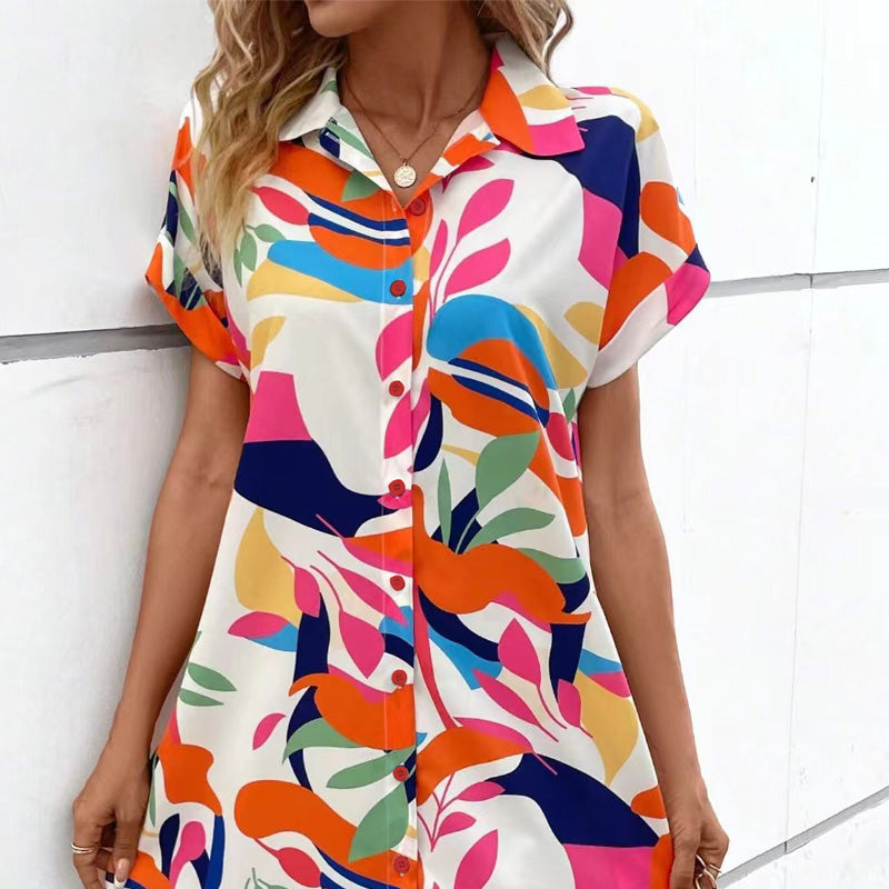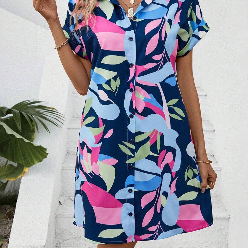 Damska sukienka koszulowa z krótkim rękawem z kwiatowym nadrukiem