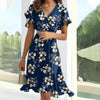 ⌛Damska letnia sukienka midi z falbanką i dekoltem w serek z wiązaniem w talii