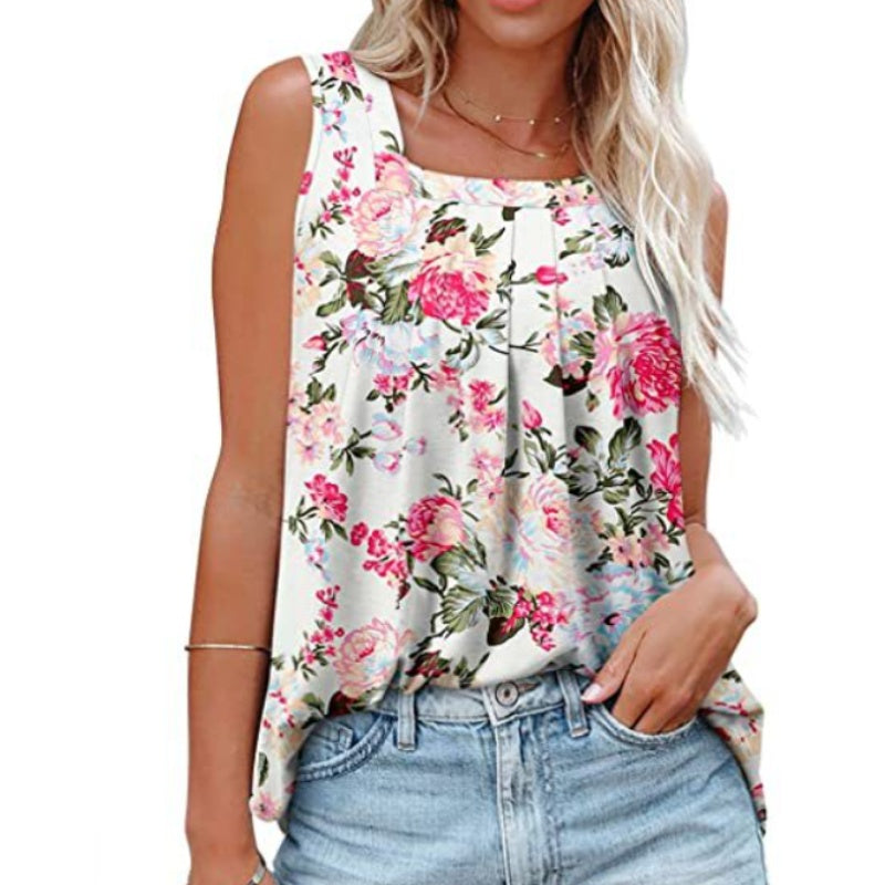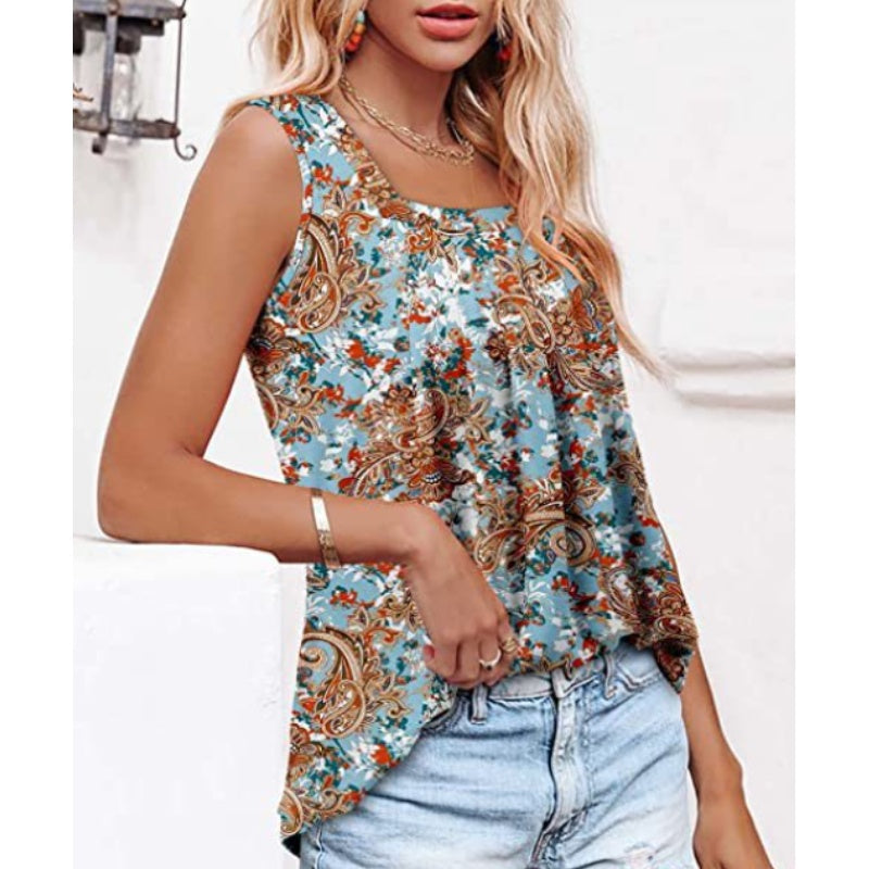 Women's Summer Sleeveless Square Neck Printed Camisole Top