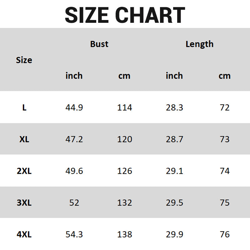 Size: L, XL, 2XL, 3XL, 4XL