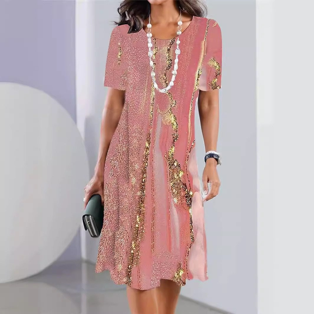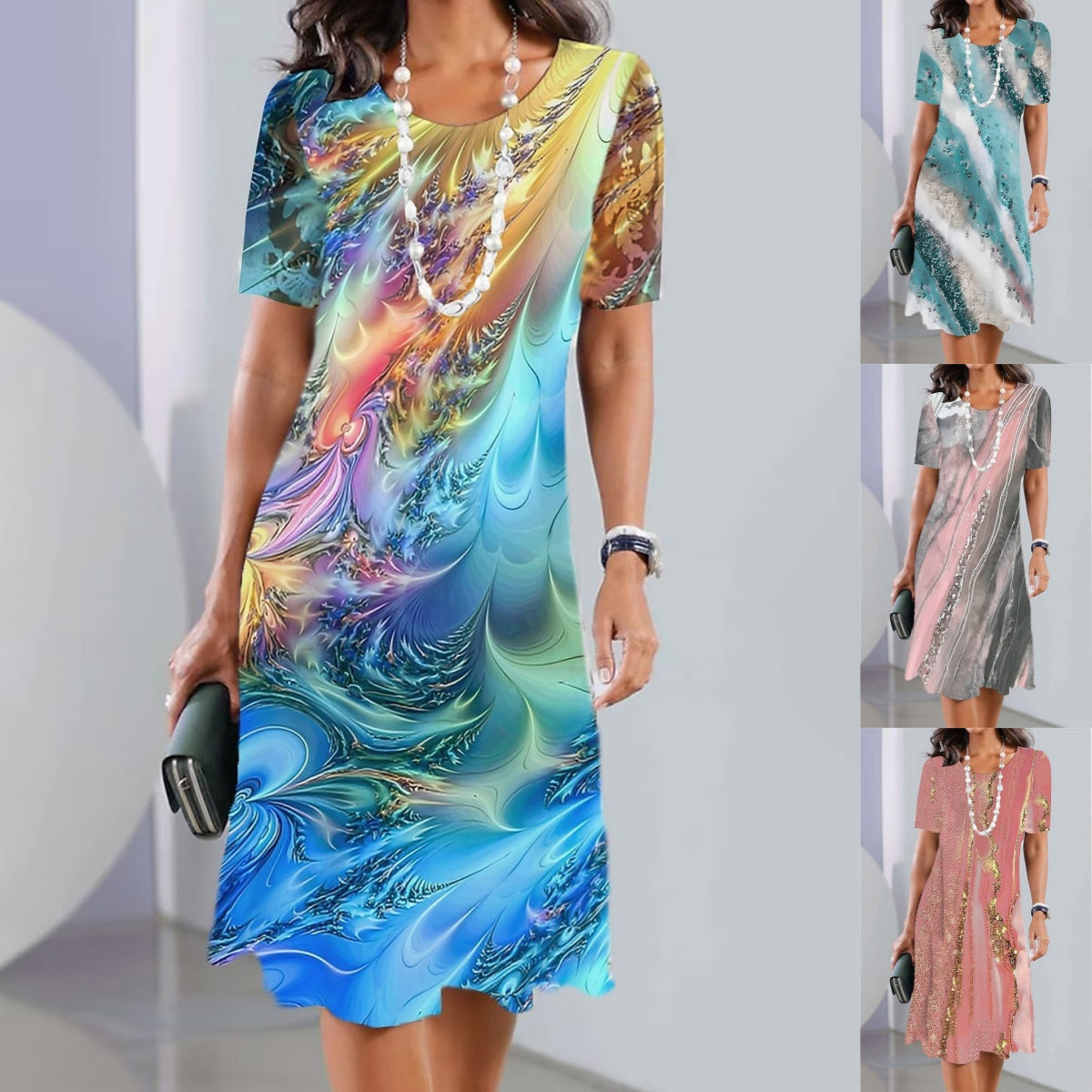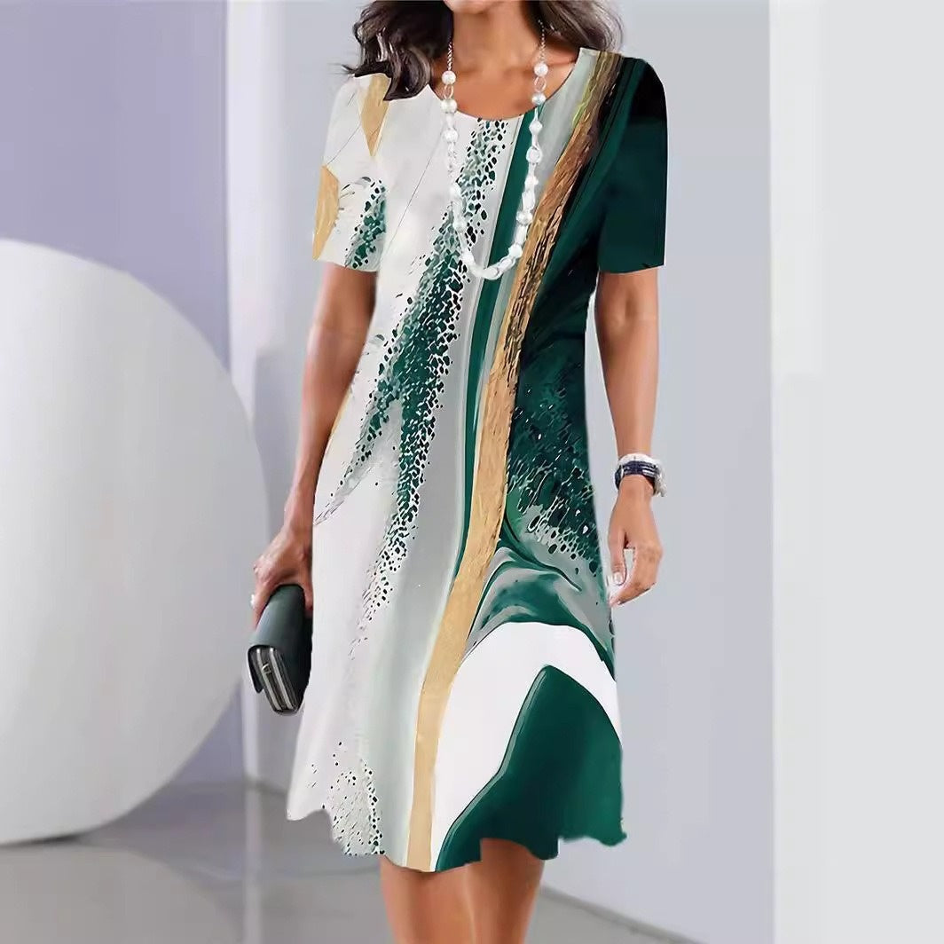 Pakiet zawiera: 1* Damska sukienka z okrągłym dekoltem z nadrukiem