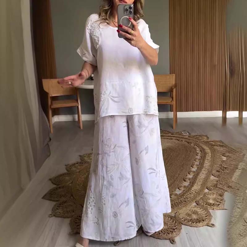 Pakiet zawiera: 1 * Damski 2-częściowy zestaw casualowy z kwiatowym nadrukiem
