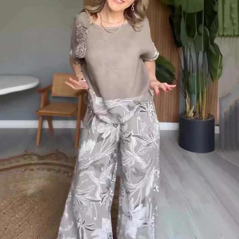 Damski 2-częściowy zestaw casualowy z kwiatowym nadrukiem