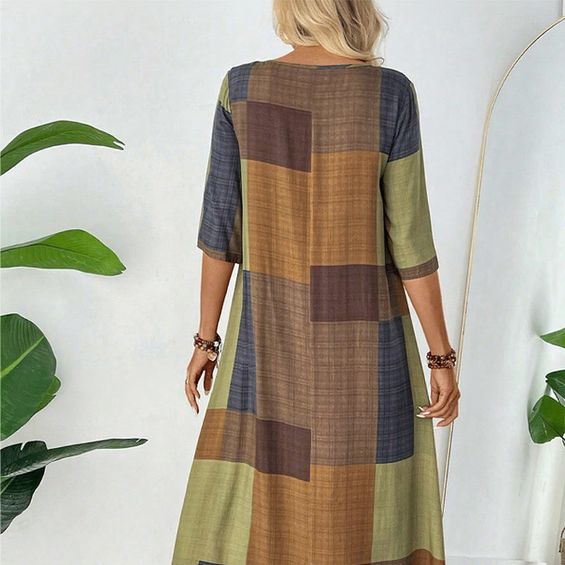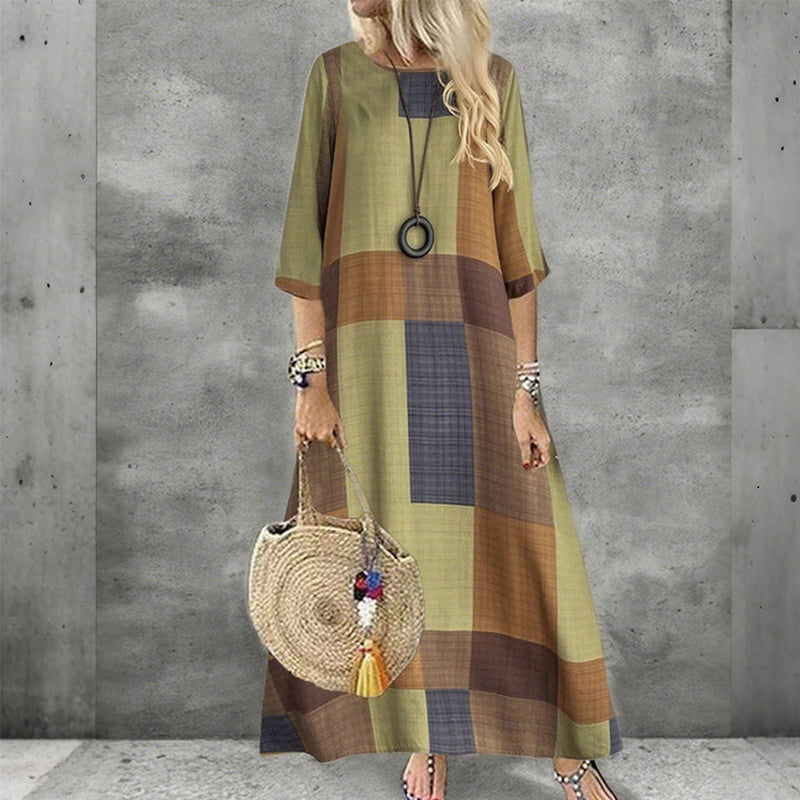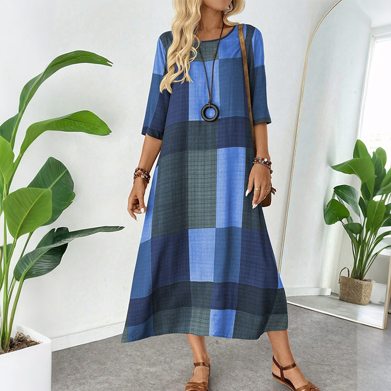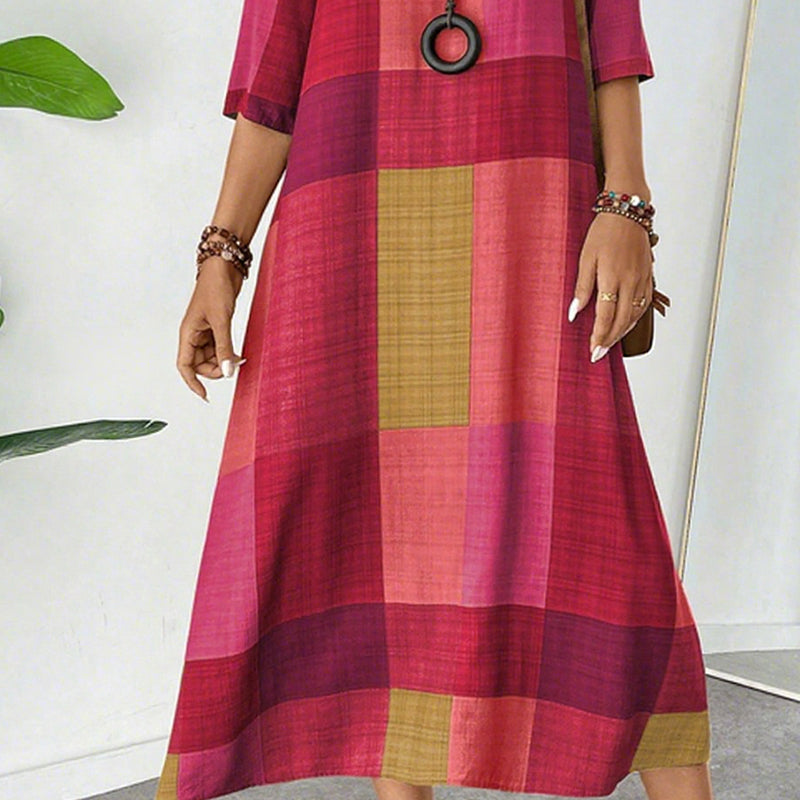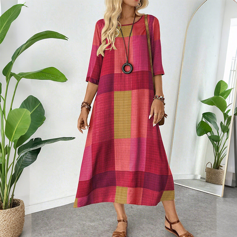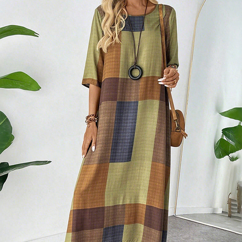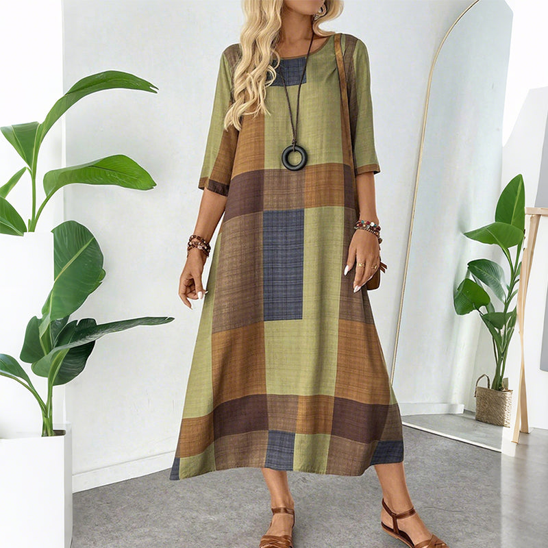 Zestaw zawiera: 1 * długa sukienka damska z krótkim rękawem w kratę