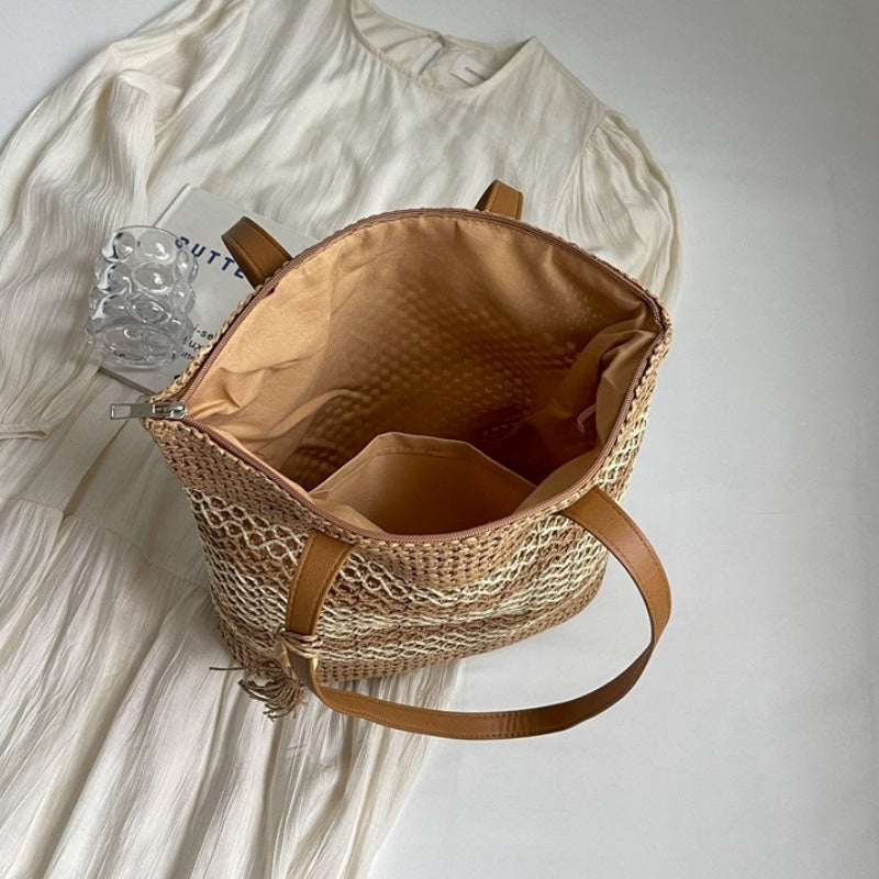 LEKKA I TRWAŁA – Wykonana z wysokiej jakości plecionej słomy torba jest lekka, a jednocześnie wytrzymała, co zapewnia długotrwałe użytkowanie bez dodawania dodatkowego ciężaru.