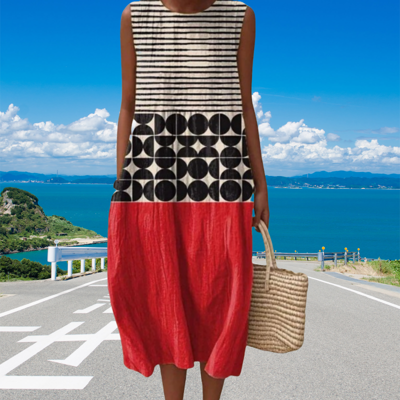 🔥👗Modna damska sukienka bez rękawów z okrągłym dekoltem